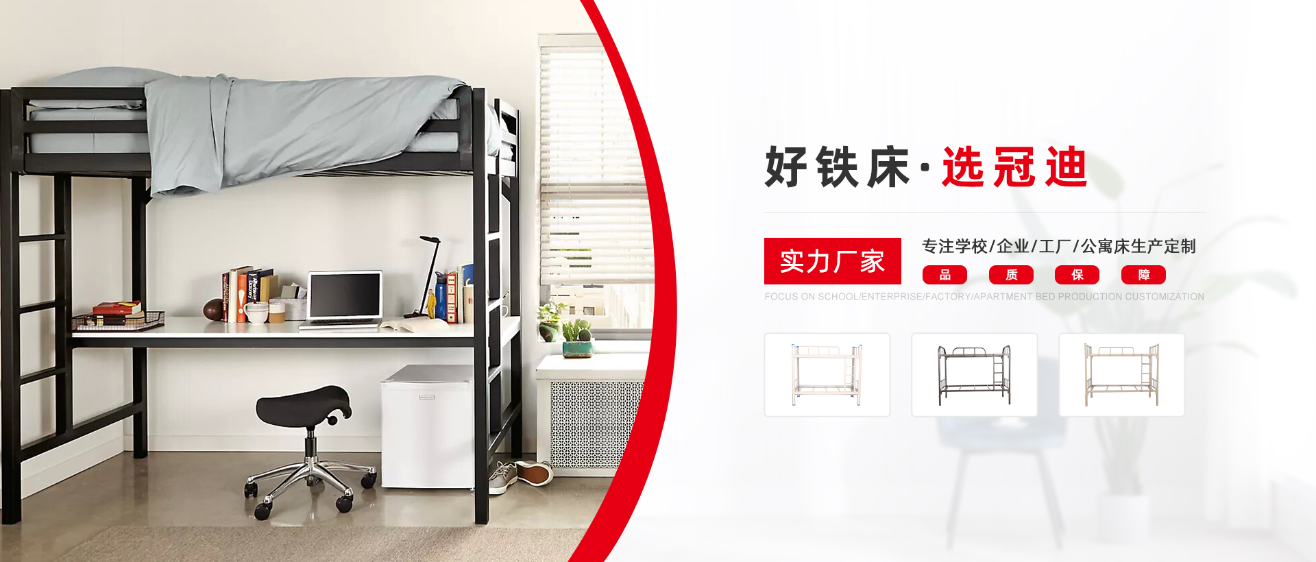 冠迪五金-看得見的鐵床生產(chǎn)實力 現(xiàn)代化生產(chǎn)制造企業(yè),為超過1000企業(yè)單位提供公寓宿舍鐵床鐵柜整體解決方案